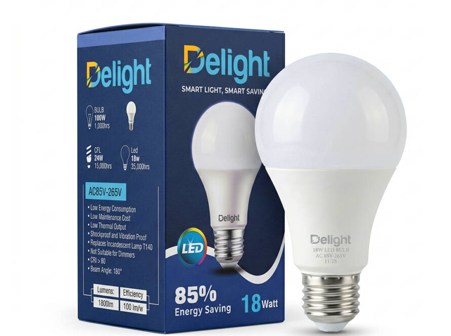 Replacing a 100W incandescent bulb with just 18 watts, Delight LED slashes your electricity bill by up to 85% — smarter light, real savings every month.